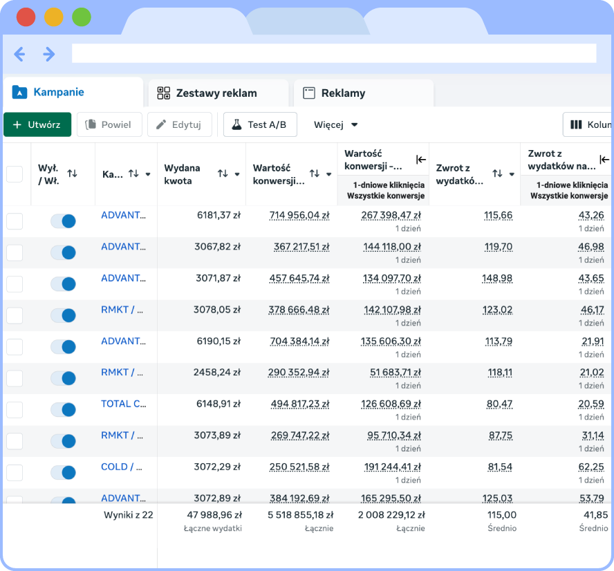 Łączę obie te kompetencje, ponieważ w obecnych realiach Meta Ads takie podejście pozwala osiągać jeszcze wyższe zwroty z inwestycji.